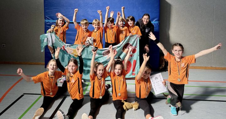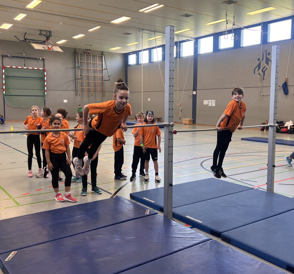 Unsere Schule hat in diesem Jahr erstmals am Wettbewerb NRW YoungStars Turnen teilgenommen – einem Schulvergleichswettkampf für Grundschulen in Nordrhein-Westfalen. In den Disziplinen Klettern, Seilspringen, Synchronturnen, Hockwende, Schräghandstand an der Wand, Balancieren, Bocksprung, Bodenturnen und Reckübung zeigte unsere Mannschaft aus zwölf Kindern der Klassen 2 bis 4 großen Einsatz und Teamgeist. Die Disziplinen waren spannend und oft sehr knapp.